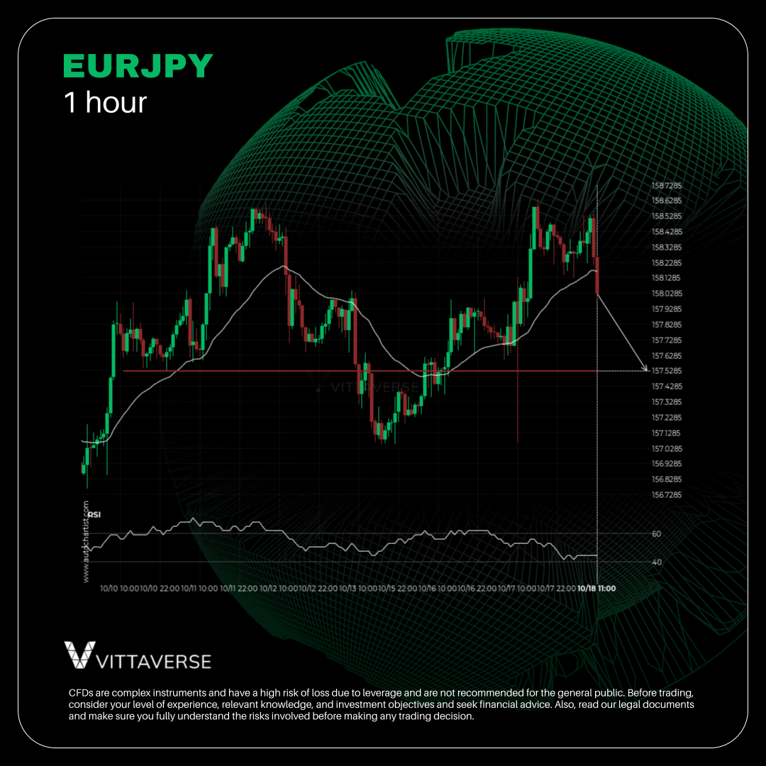 EURJPY is moving towards a support line. Because we have seen it retrace from this level in the past, we could see either a break through this line, or a rebound back to current levels. It has touched this line numerous times in the last 9 days and may test it again within the next 2 days.